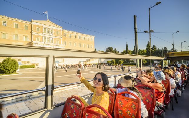 Trace the history and culture of Athens from ancient times to the present day on this great-value Hop-on, Hop-off open-top bus tour from City Sightseeing. The tour routes cover every corner of the city - from the breathtaking Acropolis to the stunning Votsalakia Beach.